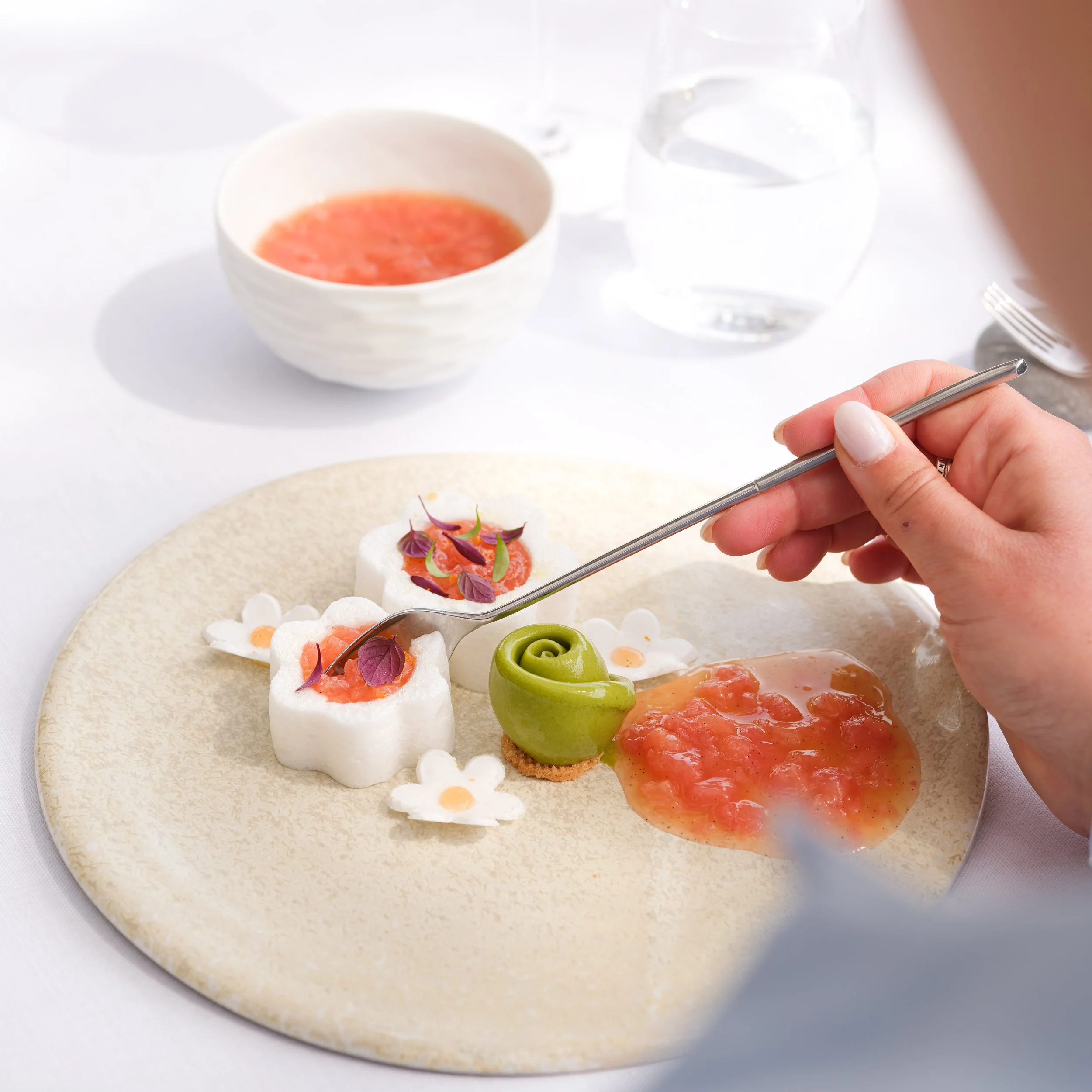 Precision of flavor and textures, graceful lines, sharpness of intent